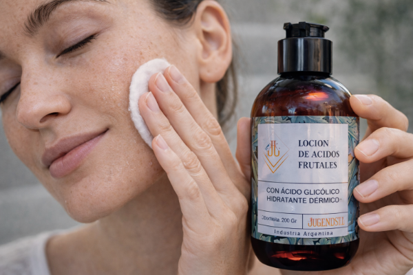 Con ácido glicolico y alfa hidroxi-ácidos. Hidrantante, renovador celular (peeling suave), anti arrugas.